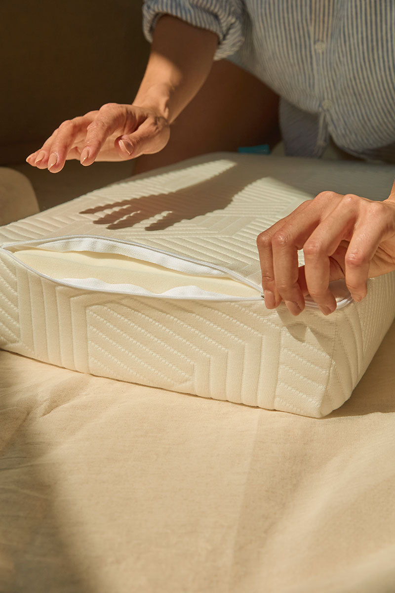Het geheim zit in de unieke, rechthoekige vorm. Deze vorm zorgt voor optimale steun aan je nek en schouders, zodat je ontspannen slaapt en helder wakker wordt. Met onze drie verschillende hoogtes vind je altijd de beste match voor jouw lichaamsbouw.