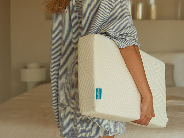 SidePillow wordt geleverd in een stevige kartonnen doos met een beschermhoes om het kussen schoon en veilig te houden.